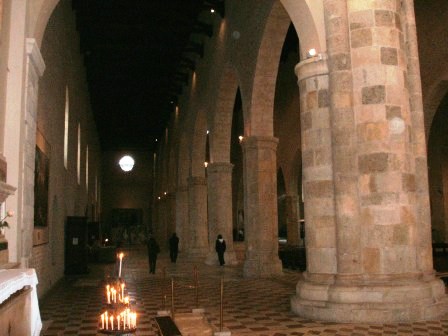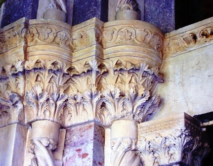 Le colonne sono ottagonali, salvo le ultime due, che delimitano la zona dell’altare, che sono polilobate. (L’8 simboleggia notoriamente la trasformazione e il passaggio da uno stato a un altro e l’ottagono è intermedio fra quadrato e cerchio, si pensi al fonte battesimale e ai battisteri ottagoni, ma anche ai tamburi che collegano i templi quadrati alla cupola).
