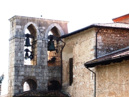 La chiesa aveva un campanile, e di questo si sa che crollò nell’ottocento. Era posto sulla torre ottagonale e forse è stato parzialmente ricostruito vicino alla Porta della Perdonanza.