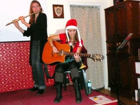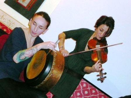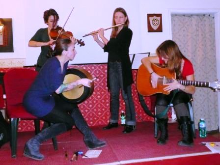 Quest’anno, alla celebrazione solstiziale 2009, abbiamo avuto il piacere di ospitare nuovamente le Fimm, il gruppo composto da Francesca Romana Fabris (chitarra e voce), Lucrezia Testa Iannilli (bodhran, darubukka), Chiara Cavalli (fiddle), Katia Onofri (flauto traverso, flauto dolce, whistles, voce). Le Fimm hanno enormemente ampliato il loro repertorio di musica scozzese, celtica, irlandese ed hanno coinvolto il pubblico di Simmetria, più abituato a conferenze che a eventi musicali, con la loro verve, simpatia e la loro bravura. Alcuni pezzi particolari, in cui la musica cambia più volte ritmo, con pause che fanno dialogare tra loro i vari strumenti, hanno riscosso applausi a scena aperta, in una sala pienissima.