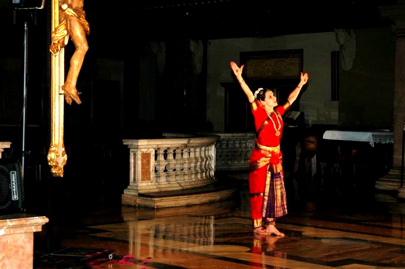 Tale sinergia ha prodotto particolari coreografie interpretative della storia del Cristo o delle fasi rituali dello stesso sacrificio della Messa, dando luogo a un originale ma intenso connubio che, se può lasciare inizialmente sconcertati, ci ricorda che, con quella espressività totale propria della danza classica indiana, ogni fase rituale viene tradotta e amplificata dal danzatore.